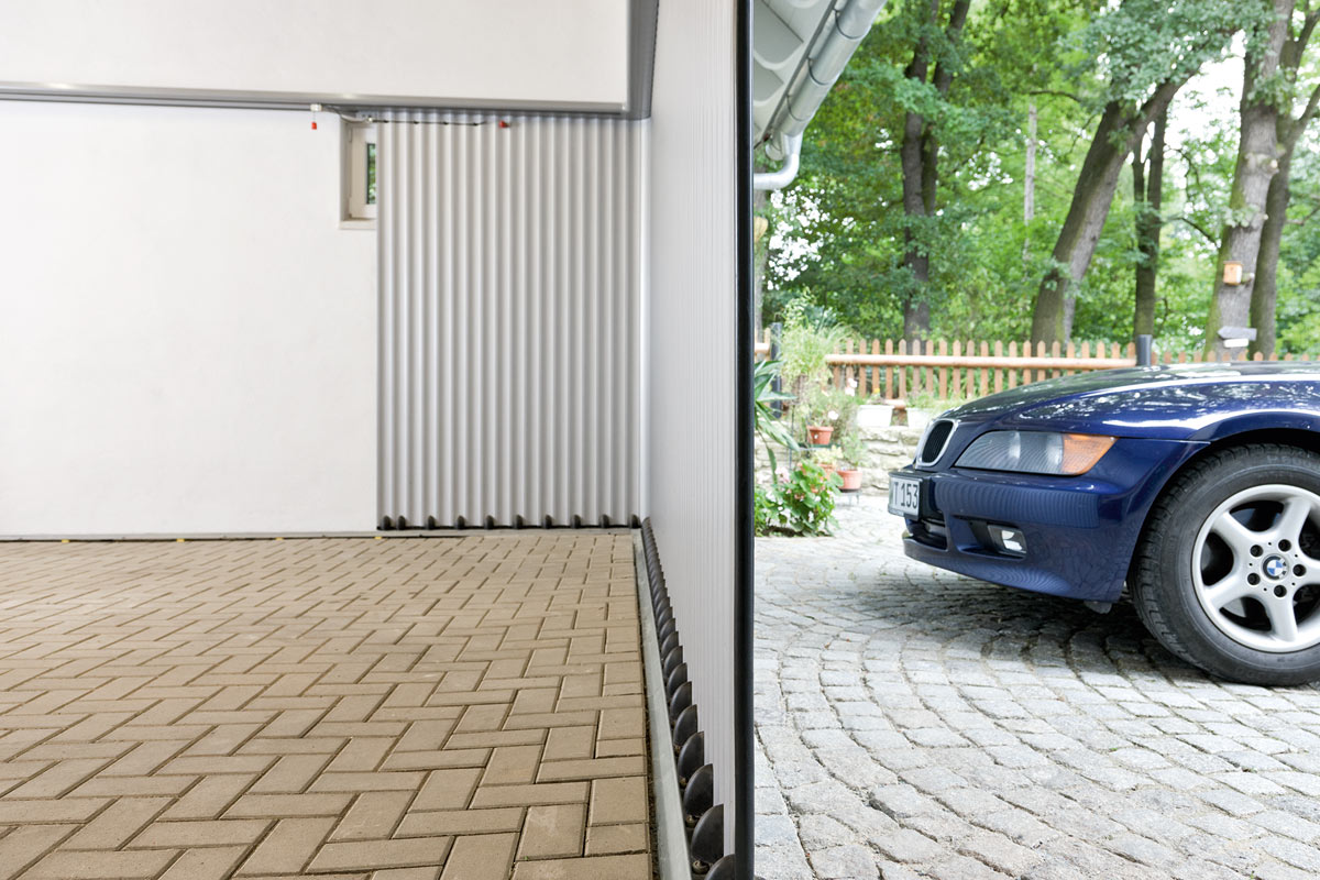 无论是卷帘门、横推门或是顶门:车库门只需要几厘米空间。因为 Alulux 车库门精确按照要求尺寸制造,最大限度的利用空间。