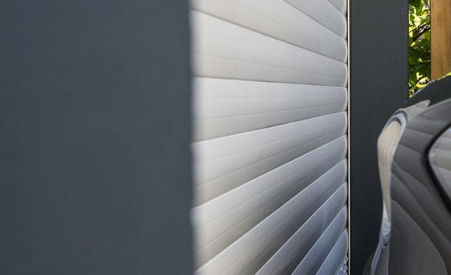 卷帘门不占用墙体,将车库天花板空闲,确保获得最大空间。开启时,优质卷门封锁在铝盒中 — 保护其免受泥土,尘土和破坏。